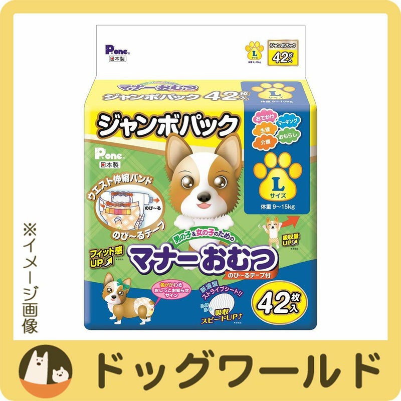 Pone 男の子&女の子のためのマナーおむつ のび~るテープ付き ジャンボパック Lサイズ 42枚 ※お一人様2個まで
