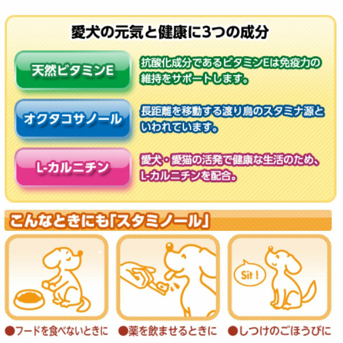 CHOICE+スタミノンは、愛犬の食欲不振などにいつものフードにかけて与えるリキッドタイプの栄養補完食です。
