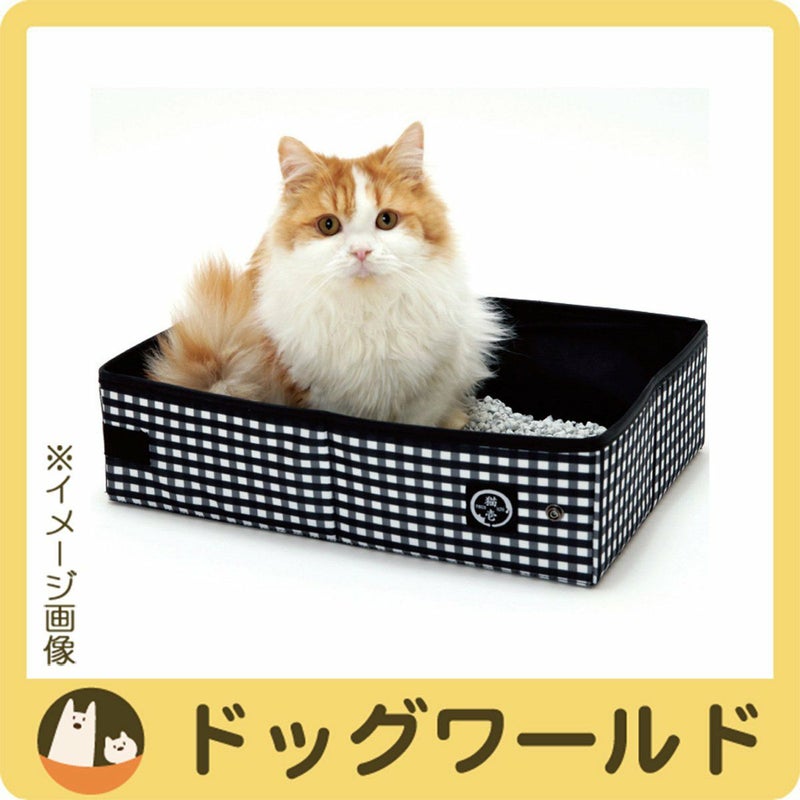 猫にストレスを与えない大きさと、足掛けでき、砂の飛び散りを防止する充分な高さがあります。内側に厚い防水布を使用しました。
