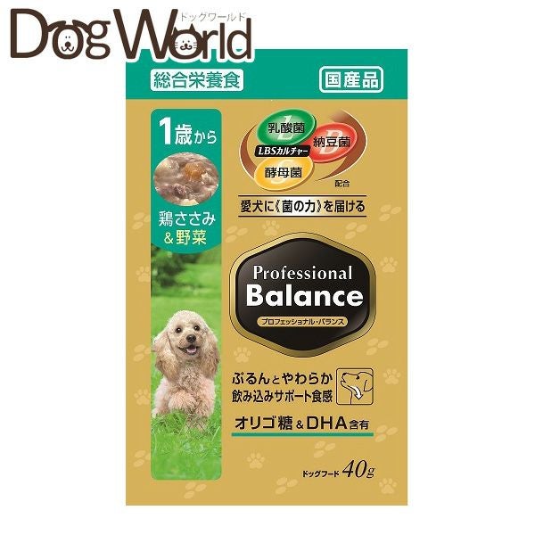 ペットライン プロフェッショナルバランス パウチ 1歳から成犬用 鶏ささみ&野菜 40g×12