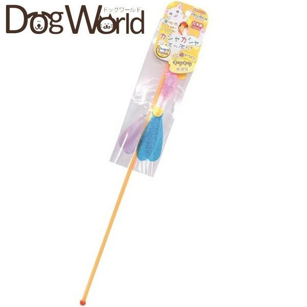 カラーフィルムとオーロラフィルムの2枚のハネフィルムを使用。カシャカシャ音とキラキラ光と見やすい色で猫ちゃんの狩猟本能を刺激します。ゆらゆら揺れるネズミさん。